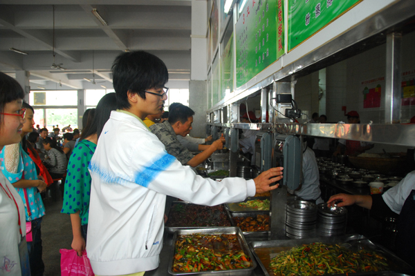 新生在使用学院提供的一卡通餐卡服务,爷孙俩吃到了来学校的第一顿午饭。