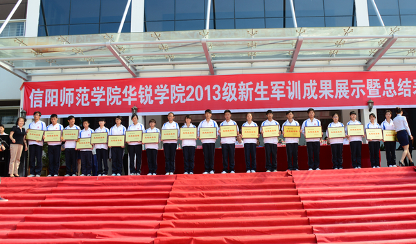 张莉作了总结讲话。她代表学院向承训的71625部队官兵表示衷心的感谢和崇高的敬意,向参训学子、获奖集体和个人表示慰问与祝贺。她指出,为期近两周的军训,不但培养了同学们的组织纪律观念,而且提高了大家的综合素质。军训成果检阅和表演严整有序、气势恢宏、意气风发,充分展示了华锐学子的精神风采。在学院历经十载,开拓创新进入快速发展新时期,她对新生们提出了三点希望。一是“梦想就是最好的奖赏 ”。要做一个有梦的人,追梦的人,在自我奋斗实践中实现梦想与现实的融合,始终坚持做到既要仰望星空,又要脚踏实地,实现梦想给自己的最大奖赏;二是“看成败,人生豪迈”。生活从来就不是一帆风顺,有成功有喜悦,有痛苦也有悲伤。处顺境时,要不骄不躁、再接再厉,也不能忘记逆境中的艰难求索和不辞辛劳。身处逆境时,要知难而进、奋发向上,却也不能忘记家中的父母和挚爱的师长;三是“机会只留给你”。希望同学们抛弃过去的成绩和遗憾,珍惜在校学习时光,掌握扎实的基本功,培养强烈的求知欲和创新精神,远离“电子海洛因”,勿沉迷于网络虚拟世界,努力做一个品德高尚、心灵高贵和趣味高雅的和谐之人。