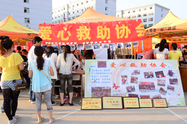 10月13日,我院各学生社团在团委、社团联合会的统一组织下,在篮球场开展了招新活动。院党委书记张莉、学工部副部长张富庄、团委副书记胡秀云、团委全体老师和40位社团指导教师来到现场指导招新工作。