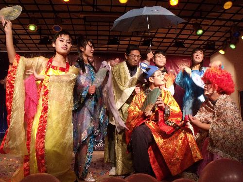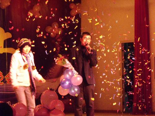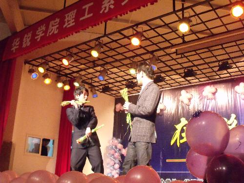 系主任钟迪生教授为欢迎并感谢各位院系领导的到来即兴演唱了一首《毛主席的恩情比山高比水长》,让广大师生重温了一段红色的岁月,钟教授的激情演唱赢得了观众经久不息的掌声,再次把晚会推向高潮;《大变活人》是我院第一次把魔术搬上舞台,演员神秘莫测的表演把观众带到一个魔幻的世界。最后,晚会在师生大合唱《明天会更好》中谢幕。
