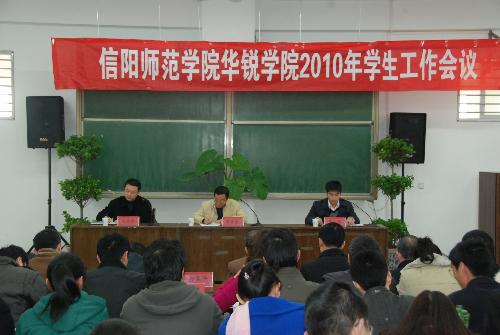 3月17日,我院2010年学生工作会议在图书馆102室召开,院长郑定豪、副院长王志华出席会议,各系主任、助理、行政秘书、辅导员、班主任和各部门负责同志参加了会议。