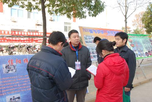 12月5日,由我院与信阳师范学院共同承办的河南省毕业生就业市场豫南地区分市场暨2010届毕业生双选周活动在逸夫楼大学生就业教育招聘大厅拉开了帷幕。