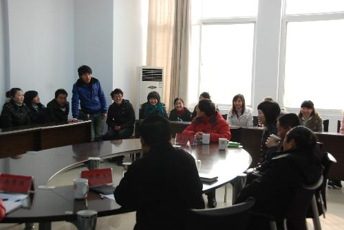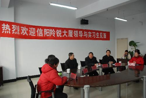 1月11日上午,信阳驻郑州办事处主任王进武与信阳羚锐大厦人力资源部经理闫静一行来我院与将要参加专业实习的社科系2007级旅游管理专业学生见面,见面会在会议室举行。