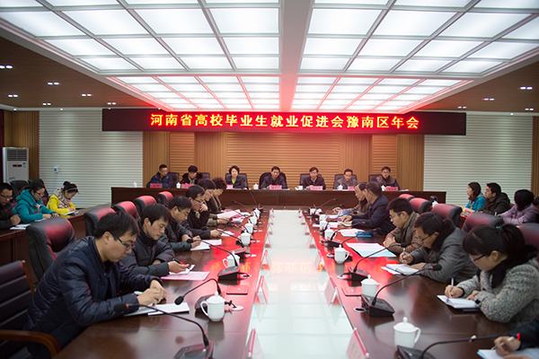 2015年1月22日,由我院承办的2014年河南省高校毕业生就业促进会豫南片区年会在行政楼208会议室隆重举行。省教育厅学生处副处长杨占军,省就业服务中心研究指导部主任卢建杰,黄淮学院副院长王瑞丽,信阳农林学院副院长杨士斌,信阳涉外职业技术学院副院长晏祎,我院院长施昌海、院长助理杨高伟及信阳师范学院、信阳职业技术学院、驻马店职业技术学院等豫南片区7所高校负责就业工作的同志应邀出席会议。学院各系就业工作秘书和辅导员共同参加了会议。院党委书记张莉主持了会议。