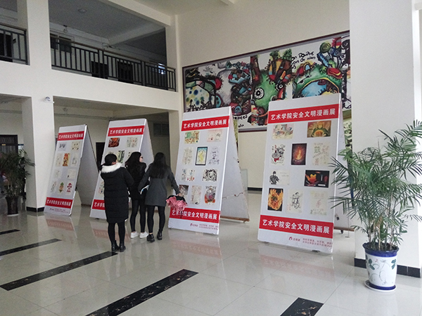 以“增安全意识、创文明宿舍”为主题的校园安全漫画展,共征集各个年级的学生作品500余幅。经过专家评审,最终遴选出160余幅作品参展。作品内容围绕杜绝违章用电、增强安全意识、倡导文明行为等方面展开,生动、幽默、形象,给师生们留下了深刻的印象,营造了良好的宣传教育氛围。
