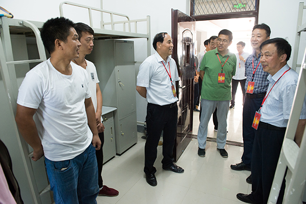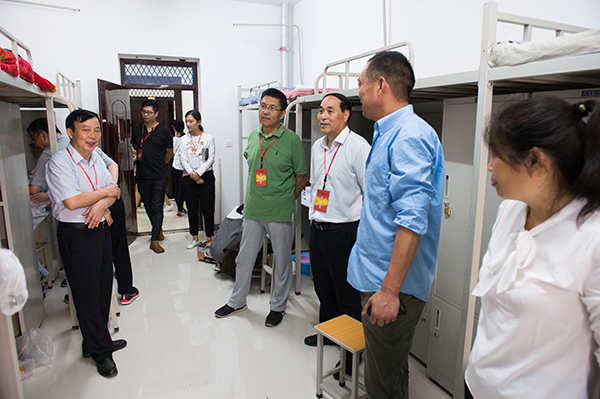 校领导来到新建的17号和18号公寓,看望入住的新同学和家长。每走进一个宿舍,都亲切地与新生和家长交谈,仔细询问同学们“来自哪里?”“刚到学校是否适应?”“对住宿的环境是否满意?”“对食堂的饮食是否习惯?”等,并耐心地解答了新生和家长提出的问题。
