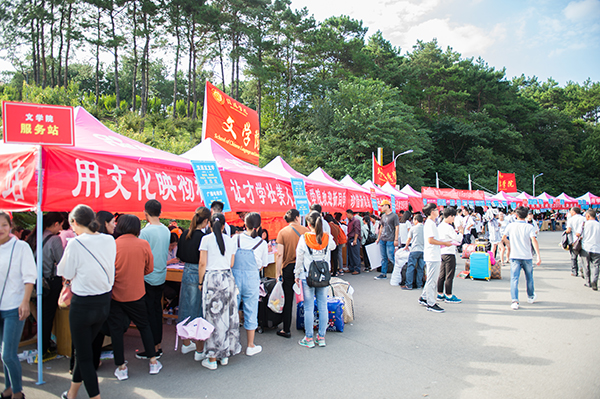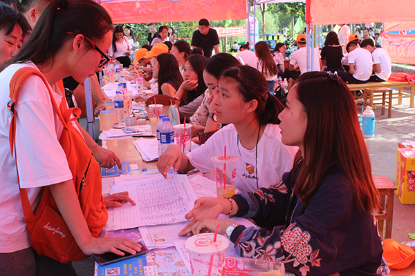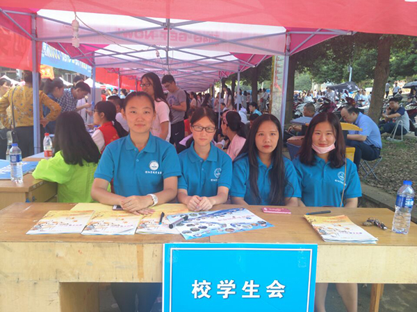 一身蓝色的衣服,他们是“革命的一块砖,哪里需要就往哪里搬”。他们是“蓝精灵”,是校学生会服务者。迎新期间,他们每天从早上六点半工作到凌晨一点,负责正门、东门的沿途引导,帮助“小石器”们将行李搬上校车。校学生会的冯岩说,家长顶着太阳不远万里来送“小石器”,看到他们顺利报到,觉得自己的付出是值得的。他将继续贯彻和执行“尽我所能,全心为你”的工作理念,更加努力的工作,为新生和家长提供更贴心的服务。除了这些可爱的“小红帽”和“蓝精灵”们,各个学院也为招新做了充足的准备,文学院的“小橙帽”充满青春活力,数学与信息学院使用三轮车为新生搬运行李,艺术学院带有“兿”字的文化衫是校园里的一道靓丽的风景线。校卫队的小伙伴们疏导交通,维持校园秩序。校医务室的工作人员全天在迎新现场为在场师生提供医疗服务。