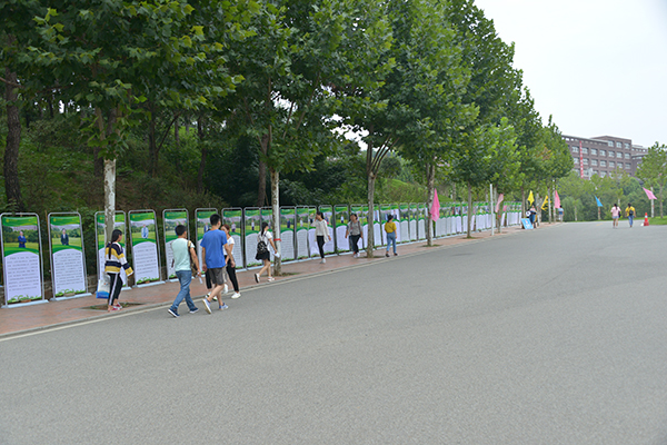 学校草坪上树立着“你好,新同学”为主题的合影墙,路旁专家教授和青年博士的易拉宝展架依次排列,校园网开通了迎新专题网站,微信和微博上及时发布多个迎新专题,广播播放学校和各学院简介等多个迎新专题,LED大屏幕等校园媒体平台及时播放迎新的动态消息和校园文化视频等等,这些处处彰显了信阳学院的校园文化魅力,为广大新生营造了良好的氛围。
