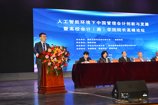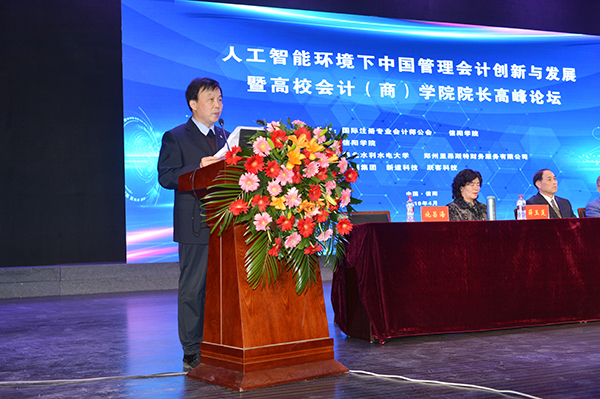 4月27日,由国际注册专业会计师公会和信阳学院主办、信阳学院承办的人工智能环境下中国管理会计创新与发展暨高校会计(商)学院院长高峰论坛在信阳学院音乐厅隆重举行。国际注册专业会计师公会管理会计学术执行总裁 Ash Noah,北京工商大学副校长、会计名家、中国商业会计学会会长谢志华,浪潮集团副总裁、财政部会计信息化标准技术委员会专家魏代森,河南省会计学会副会长、郑州航空工业管理学院原副院长李现宗,河南省会计学会副会长、河南省教育厅工商管理学科教指委主任委员、河南财经政法大学副校长薛玉莲,国际注册专业会计师公会中国大陆事务总监徐国栋,中国管理会计研究与发展中心执行主任、会计名家、中央财经大学会计学院党委书记刘俊勇;信阳学院理事长高云,名誉校长王北生,专职副书记施昌海出席大会。来自中央财经大学、中南财经政法大学、西北工业大学、天津财经大学、武汉纺织大学、重庆理工大学,重庆工商大学、华东政法大学、上海海事大学、中国石油大学、山东农业大学、湖北经济学院、西安欧亚学院、河南大学、河南农业大学、河南师范大学、华北水利水电大学等全国各地60余所高校160多位会计(商)学院院长和企业界财务总监、总会计师等领导和专家,以及有关学术刊物和媒体界朋友齐聚信阳,共襄盛会。施昌海主持了开幕式。