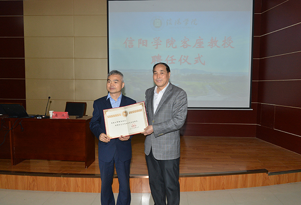 在学校举行的客座教授聘任仪式上,王北生为刘俊勇、胥朝阳、高汉、黄辉、胡伟、孙毅、郭飞和程平等8位受聘教授颁发了聘书。
