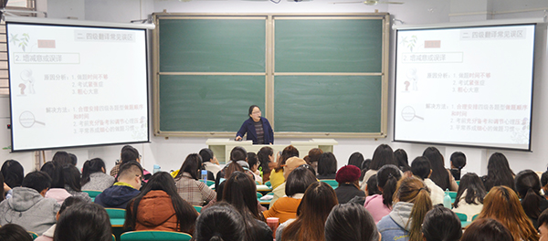 夯实朋辈辅导平台,示范帮学助力学风建设。2018年以来,外国语学院精准调研分析各年级学生阶段性需求,积极创新学风建设思路,深化朋辈辅导内涵,针对2016级、2017级、2018级3个年级学生陆续组织召开10余场“专四考试经验交流会”“考研经验交流会”“校园明星巡回演讲”“魅力团支书宣讲会”等为主题的朋辈辅导活动,充分借助身边榜样的力量激发学生自我管理、自我教育、自我提高的潜能,进一步增强学生学习动力,促进优良学风建设。