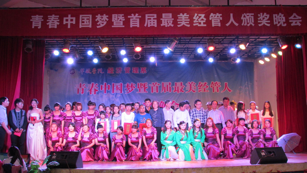 传递青春正能量,共铸伟大中国梦。5月8日晚,经济管理系在大学生活动中心举办青春中国梦暨首届最美经管人颁奖晚会。院党委书记张莉教授,外语系主任罗德喜教授,理工系主任魏明坤教授,艺术系主任王勉堂教授,经济管理系主任孟广章教授,督导督察室主任、教学部副部长于祥杰教授,学工部副部长张富庄,团委副书记胡秀云及该系500余名师生观看了晚会。