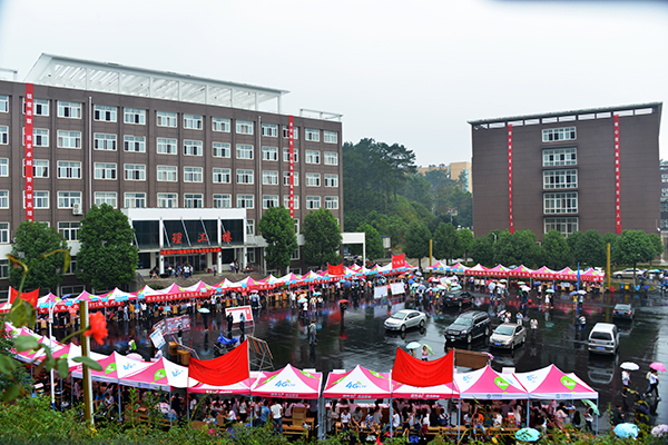 校园里,一面面彩旗迎风飘扬,一幅幅写着“金秋送爽,靓丽宜居宜学校园;丹桂飘香,温馨求真求知心田”“质量立院、人才强院、特色兴院、培育英才、服务老区、增辉中原”“放飞青春理想,同筑华锐梦,共圆中国梦”等的标语和一张张写意校园文化的社团展板,彰显着华锐的无穷魅力,承载着新学子们青春成长的梦想。主干道上,迎新报到的车辆和人群,在校园保安、校卫队队员等的引导下,有条不紊地安全进出。在理工楼的迎新报到现场与行政楼的缴费服务窗口前,师生志愿者、医务人员和校园记者等迎新工作人员迎着风雨、尽职尽责,热情、周到、耐心地帮助新生办理入学事宜。中文系迎新志愿者孙梦歌介绍道:参与迎新工作的同学们都经过了前期的系统培训,掌握了迎新工作方法,由领导和老师带队,提前布置好迎新场地,准备好报到登记手续等,现场为新同学提供贴心服务。