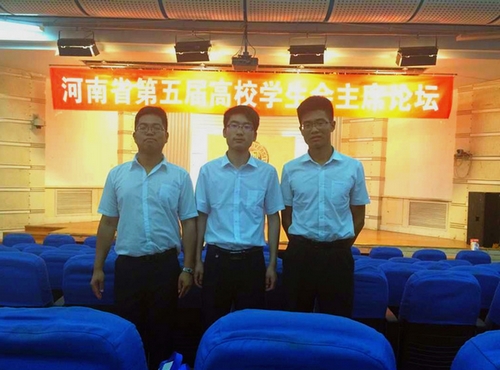 日前,由共青团河南省委、河南省学生联合会主办的河南省第五届高校学生会主席论坛在河南大学明伦校区隆重举行。省学联主席王志坤,团省委学校部部长、省学联秘书长王宏琳,团省委学校部副部长陈勇等领导出席。我院学生会主席吴宗璇、副主席付翔、张建立和来自全省80多所高校的学生会主席应邀参加了论坛。