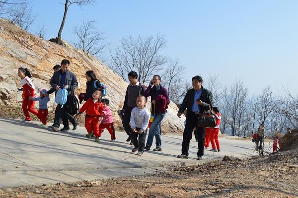 上午九点,所有的小朋友和家长齐聚贤山脚下。有了家长们的参与,小朋友们显得格外高兴,时不时都有小朋友围着家长嬉戏、追逐,相互不是很熟悉的家长们也都热情地彼此交流着,欢声笑语、其乐融融的氛围着实让人感动。