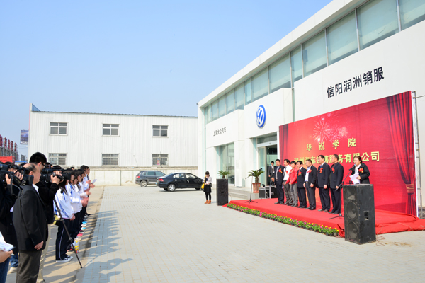 3月26日上午,学院与信阳润州汽车销售服务有限公司合作办学仪式在该公司举行。院长施昌海、党委书记张莉、常务副院长高云、副院长毛海涛,信阳润州汽车销售服务有限公司董事长刘广州、副总经理李锐等出席本次活动。理工系主任魏明坤、特聘教授明平顺,院长办公室主任张柏平、实践教学中心主任张忠锁、宣传部副部长陈杰、有关部门负责同志及理工系汽车服务工程专业师生参加了这次活动。