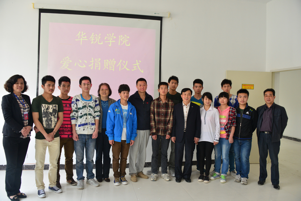 施昌海院长在捐赠仪式上发表讲话。他说:在这样一个美丽的春天里,走进市特殊教育学校感到很亲切,因为这里也是学院董事长和高院长倡导学院团委建立的“爱心志愿服务基地”。这所学校了不起,在这里工作的老师们了不起,所培养的学生也了不起。正是在此工作的园丁们秉承了“一切为了残疾孩子,让每个孩子都能健康成长”的办学理念,坚持辛勤而又出色的工作,把党和国家以及社会对这些特殊孩子的关爱,还有各种知识和智慧,成功地传递到孩子们的心灵里,刻画在他们的大脑中,才使他们在爱中成长进步,把不幸转化为幸运,真是很令人敬重和感激。古人云:“侧隐之心,人皆有之”。为特殊孩子成长成才贡献一份力量,是一切富有爱心的人都具有的朴实情感,华锐学院董事会和全院师生更是拥有这份心愿。学院在捐建微机室的同时,还会继续组织师生前来帮教助学。学院师生们也会在这样的过程中得到锻炼和提高。衷心祝愿特殊教育学校能够越办越好,两校友谊之花常年盛开,永不凋零!