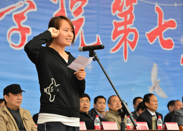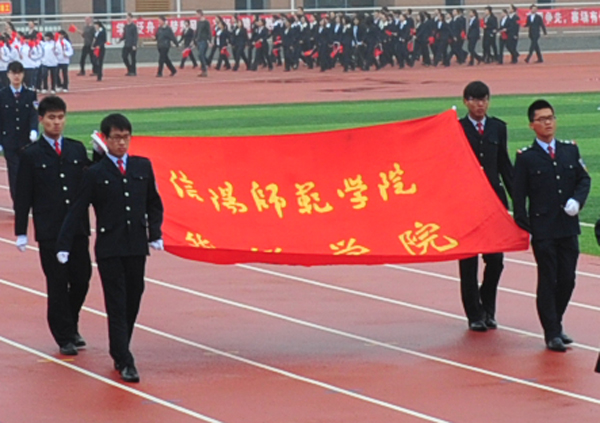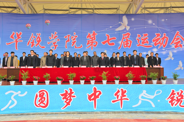 院长施昌海致开幕词。他说,这是学院继举办十年庆典之后、在推动转型发展之际召开的又一次盛会。他代表学院各位领导对本届运动会的顺利召开表示热烈的祝贺!对广大参赛运动员、教练员、裁判员以及为筹备这次运动会付出辛勤劳动的广大师生表示亲切的慰问和诚挚的谢意! 他引用名言“生命在于运动,成功需要健康”,指出这个简单而又深刻的哲理,从一个侧面揭示了人类生命存在和价值体现的重要方式。举办运动会,是学院教育教学和整个人才培养工作的重要组成部分。目的在于检验全院师生尤其是同学们体育运动水平和体质健康状况,倡导和促进广大师生进一步加强体育锻炼,增强身体素质,更好地完成学业和工作任务,充分实现个人价值。 他强调,这次运动会以“健全体魄、圆梦中华、锐意进取”为主题,体现了时代要求和华锐精神,必将能够激发广大师生注重健康、奋发有为、勇创一流,取得佳绩。希望全体运动员、教练员牢固树立“安全第一、友谊第一”的思想观念,以高昂的斗志和顽强的精神,赛出水平,赛出风格,享受体育运动带来的快乐;希望全体裁判员和工作人员坚持公平公正原则和热情服务精神,体现出良好精神风貌和应有工作水平;希望全院师生团结一致,共同努力,把本次运动会办成一个“团结、文明、安全、奋进”的盛会,并将阳光体育的健康心态和竞技体育的拼搏精神带到学习和工作中去,以优异成绩助力学院转型发展,推动社会不断进步,为实现中华民族伟大复兴中国梦而建功立业! 施昌海最后祝愿本届运动取得圆满成功! 随后,运动员代表田瑞雪同学和裁判员代表剧红梅老师在会上分别进行了宣誓。 在现场热烈的掌声与欢快的气氛中,信阳师范学院副院长、我院副董事长王文臣宣布信阳师范学院华锐学院第七届运动会开幕。 .