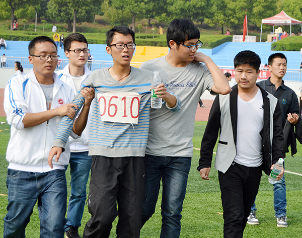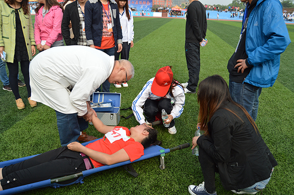 赛场上有欢呼,有精彩,然而也会出现意外。学校医疗救助站的医护人员们为运动会的顺利进行提供了安全有力的保障,他们专业的医疗急救措施在意外突发时,减轻了运动员的痛苦。他们是赛场上的白衣天使,专业娴熟的动作,认真负责的态度,体现出“医者仁心”的大爱。