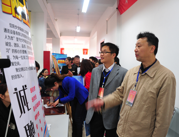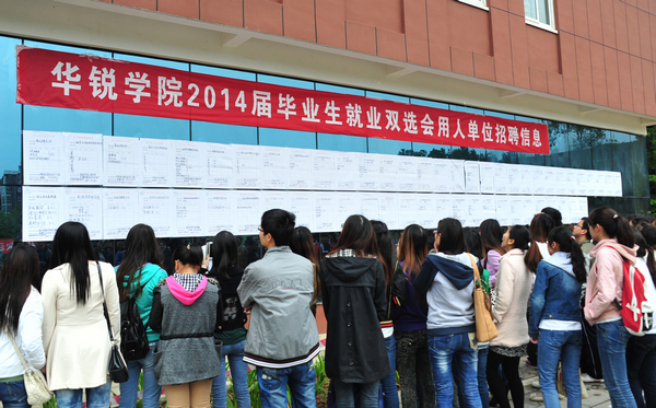 4月26日,我院2014届毕业生就业双选会在教四楼大学生就业教育招聘大厅举行。来自中国人寿、中国平安、华图教育、东方今报、河南地矿局地调三队、羚锐制药、北京联合智业、洛阳欧亚国际外国语学校等省内外100余家用人单位亮相校园、招贤纳士,提供就业岗位3000余个,涉及汉语言文学、数学与应用数学、英语、土木工程、市场营销、会计等26个专业。我院3000余名应届毕业生热情响应、积极参与,从中谋求心仪岗位。