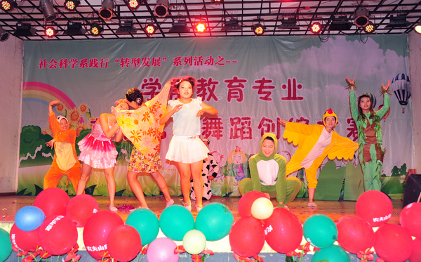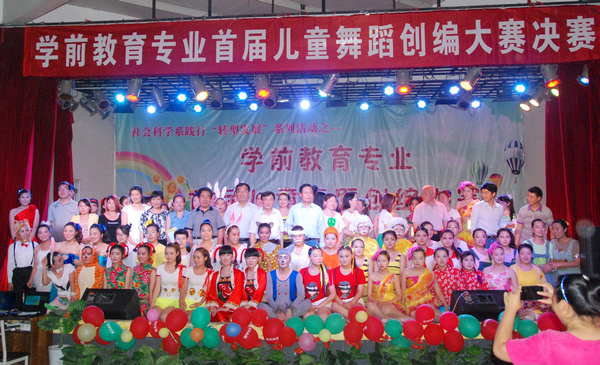 5月26日晚,社会科学系首届儿童舞蹈创编大赛决赛在大学生活动中心举行。院长施昌海,副院长毛海涛,外语系主任罗德喜,社会科学系主任陈录生,督导督察室主任、教学部副部长于祥杰,社会科学系副主任张甲楠,学工部副部长张富庄,团委副书记胡秀云,党委办公室主任助理万建章,信阳电视台首席记者王冠及600余名师生观看了比赛。信阳师范学院音乐学院专业教师周骏,解放军一五四医院幼儿园、解放军71625部队幼儿园、建业集团小哈佛幼儿园、华锐幼儿园等9所幼儿园园长应邀观看比赛并担任评委。