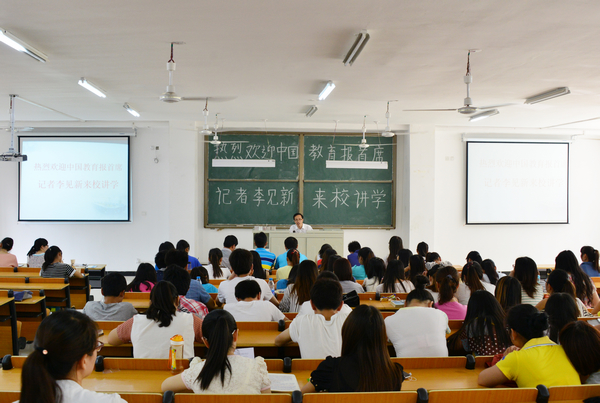 5月30日上午,《中国教育报》记者李见新应邀在我院教五楼108教室作了新闻知识专题讲座。此次活动由宣传部副部长陈杰主持,各单位负责宣传工作的老师、学生宣传骨干及中文系部分师生共200余人到场聆听。