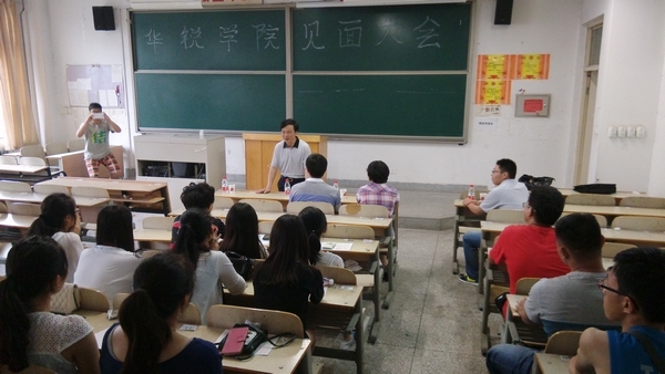 在洛阳师院有关领导的安排下,施院长一行与预科班全体同学举行了见面会。施院长对同学们顺利完成预科学习任务表示祝贺,肯定了大家所取得的成绩和进步,欢迎他们回到华锐学院开始新的学习生活。他说,华锐学院环境优美、学风优良,办学成绩斐然,所培养的学生不仅就业好,而且考研成绩突出,2014届毕业生有523名同学考取了研究生,获得继续深造机会的学生是同类同规模院校的2-3倍。他希望大家能够继续保持和发扬在预科阶段养成的良好学习生活习惯,争取在本科阶段学得更好、做得更好,努力成为国家栋梁之材。