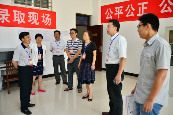 7月16日上午,在艺术类批次即将开始录取工作之际,院长施昌海,党委书记张莉,常务副院长高云,副院长王志华、毛海涛,院长助理杨高伟等领导一行顶着炎炎烈日,再次来到我院2014年高招录取现场,了解招生录取工作情况,亲切慰问招生工作人员。