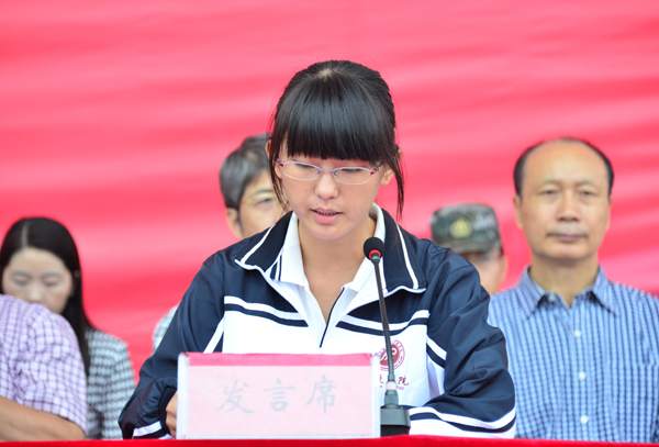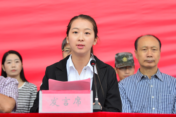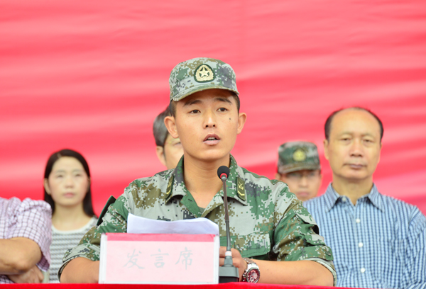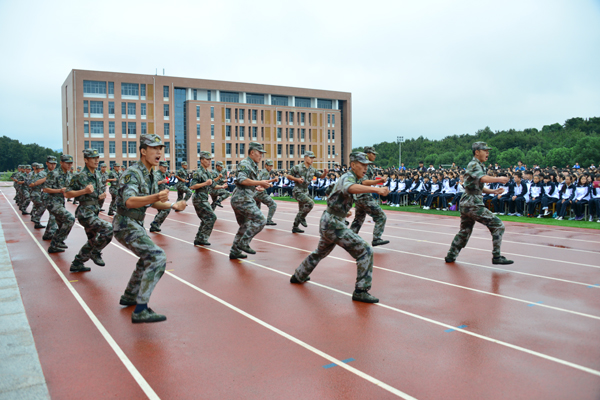 会上,优秀新生代表刘姗、老生代表丁银盈、教师代表杨辉、承训教官代表孙建利先后发言。承训官兵为师生们展示了精彩的队列示范和军体拳表演。