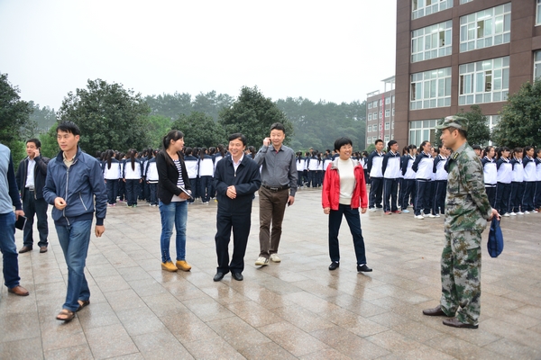 9月12日下午,在我院2014级新生军训首日,院长施昌海,常务副院长高云,副院长王志华和承训部队首长傅林灿在院长办公室和学工部负责同志的陪同下,迎着蒙蒙细雨来到学院新生军训场地检查指导工作,亲切看望了正在军训的教官及师生。