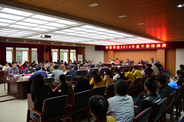 10月15日,学院2014年度干部培训班第三次集体学习活动在行政楼208会议室举行,院长施昌海,党委书记张莉,常务副院长高云,副院长王志华、毛海涛和各系主任、各部门主要负责人、各单位教研室主任以上干部及全体辅导员一起,共同观看了湖北群艺集团董事长李荣同志所作的报告――“中国积分制管理”。学习活动由高云主持。