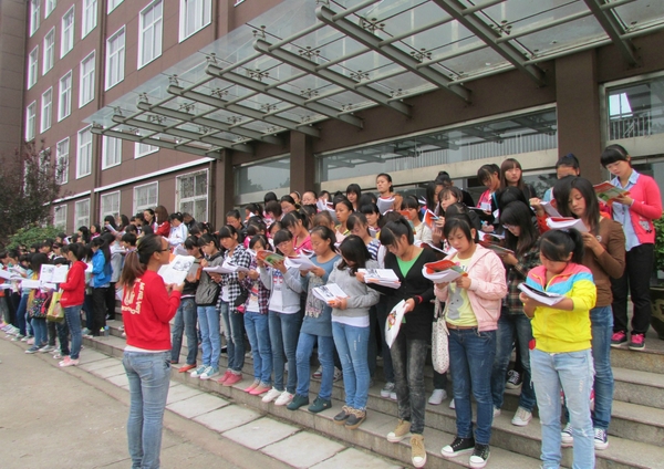 会读还要敢说。外语系设立了一个既能照顾起点低的学生又能为较好的学生创造发展空间的平台——“课前三分钟演讲”,每个班级根据专业实际情况,灵活安排演讲时间,每次由1名或2名同学上台演讲,确保每位学生每学期上台演讲次数不少于三次。演讲内容涉及“歌颂祖国抒发赤子情怀”、“呼唤文明树立传统美德”、“团结互助携手奋发成才”等倡树社会主义核心价值观的质朴表达;演讲模式按照学生意愿,可单人或多人同时演讲,也可借助黑板板书或PPT等辅助手段;对基础好的学生鼓励即兴演讲、主题辩论等。通过积极鼓励同学们在课前用全英(全日)进行演讲,帮助学生打下扎实的语言基础,培养他们较强的实际应用能力和听说能力。