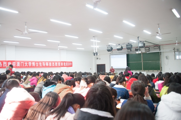 11月18日上午,澳门大学中文系教授、社会科学及人文学院副院长、博士生导师徐杰教授在图书馆102教室为我院师生作了题为“中国语言研究的民族性和世界性”的学术报告。副院长毛海涛、中文系主任傅瑛教授以及中文系全体老师们和200多名汉语言文学的学生一起聆听了报告。报告会由毛海涛主持。