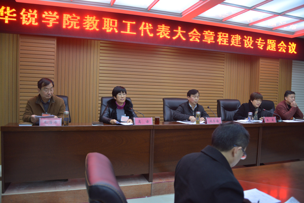 下午5时,在庄严、热烈、喜庆的气氛中,全体代表在行政楼208会议室表决通过了《信阳师范学院华锐学院章程(草案)》。