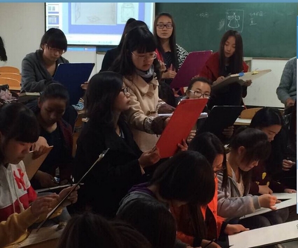我们都有同样的体会。素描课上,时间过得如此之快,甚至有些学生还提出能否增加素描课学时。作为专业技能课,除了理论讲解,大多数的时间我都在弯腰给学生改画,做范画,一节课下来,我的腰总是酸酸的,但看到他们如此认真的态度,我的心中又是非常开心。