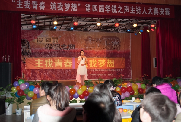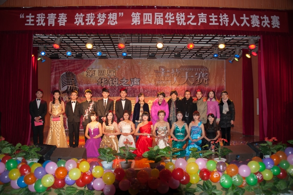 12月10日晚,由院团委主办,广播电台承办的第四届“华锐之声”主持人大赛决赛在大学生活动中心隆重举行。院党委书记张莉、党委办公室副主任张俊忠、人事部副部长李赟、学工部副部长张甲楠、团委副书记胡秀云,各系学工秘书、团委老师和600余名同学观看了比赛。