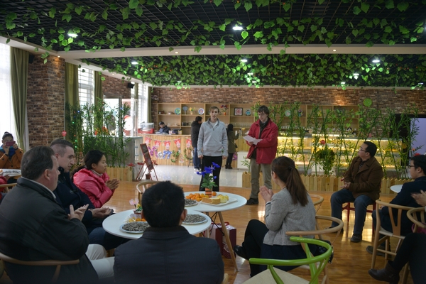 12月24日下午,我院在“微时光”咖啡厅为外籍教师举办了圣诞节联欢会,中外师生在温暖愉快的氛围中庆祝了西方最传统的节日——圣诞节。外语系主任罗德喜,院长办公室副主任张富庄,外事办公室秘书芦金凤及来自于美国、英国和澳大利亚的四名外籍教师,外语系部分师生代表参加了圣诞联欢会。