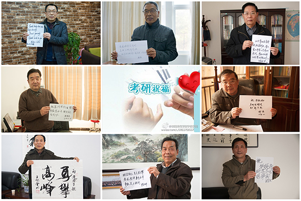 罗德喜、傅瑛、陈录生、郝涌、张伯平、王勉堂、魏明坤、王金献等各系教授纷纷寄语考研学子:“以平常心态去面对考试,我们愿做你们考研路上最坚强的后盾。”、“我们静待你们的佳音!”、“勇攀高峰”等等。