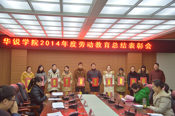 1月7日下午,我院在行政楼208会议室召开了2014年度劳动教育总结表彰会。院党委书记张莉、副院长王志华出席会议,学工部副部长张甲楠、团委副书记胡秀云及各系学工秘书、全体辅导员老师、学生代表参加了会议。会议由胡秀云主持。