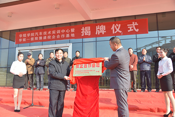 仪式上,施昌海与张正智共同为学院与信阳豫通汽车销售服务有限公司校企合作基地揭牌;高云与张正智共同签署校企合作基地协议书;毛海涛与李胜宽共同为学院汽车技术实训中心揭牌。
