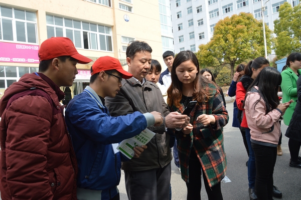 王志华在讲话中充分肯定了本次活动。他率先垂范,拿起手机扫描活动二维码,积极参与到“发微博、领绿植”活动中,以实际行动引导同学们积极参与“低碳环保”行动。