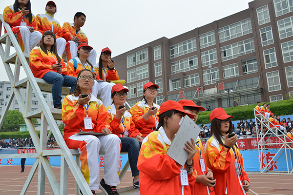 ◆校园媒体团队:无论是新闻报道第一线,还是荧幕背后、电波声里,校园媒体工作人员们在领导和老师们的带领下,借助多元化的传统校园媒体和新媒体平台,以智慧交融汗水,以真情感动师生,及时传递华锐青春正能量,为校园沸腾的田径场增添了一道炫丽动感的风景线。