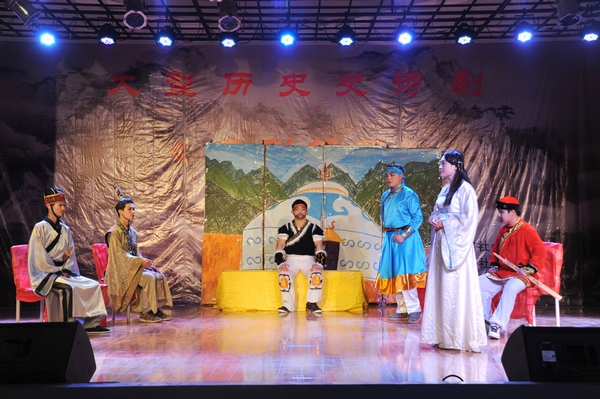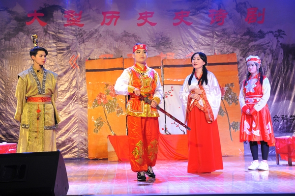 4月27日晚,社会科学系同学们排演的大型历史史诗剧《风烈胡笳》在大学生活动中心精彩上映。社会科学系主任陈录生、实践教学中心主任张忠锁、教学部副部长于祥杰、艺术系副主任李世胜、党委办公室副主任张俊忠及600余名师生观看了演出。