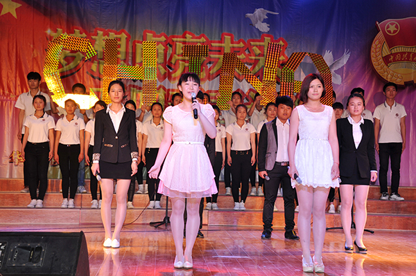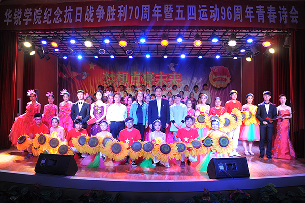5月4日晚,由院团委主办的纪念抗日战争胜利70周年暨五四运动96周年青春诗会在大学生活动中心举办。共青团信阳市委书记赵君峰,我院党委书记张莉、艺术系副主任潘传柏、院长办公室副主任张富庄、党委办公室副主任张俊忠、宣传部副部长陈杰、团委副书记胡秀云及各系党总支副书记、团总支书记、辅导员和600余名学生代表共同观看了本场诗会。