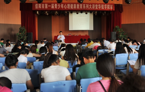 5月19日,由共青团信阳市委、信阳市教育局主办,我院学工部、团委承办的信阳市第一届青少年心理健康教育系列大讲堂在我院大学生活动中心举行。团市委权益部部长卢宏燃、市教育局义务教育科科长顾德成、市新世纪职业培训学校校长程菊红及我院学工部副部长张甲楠、团委副书记胡秀云等,以及市直单位的教育卫生工作者、我院部分班级的学生干部代表参加了上述活动。报告会由胡秀云主持。
