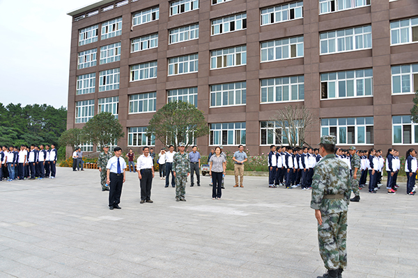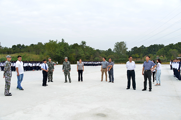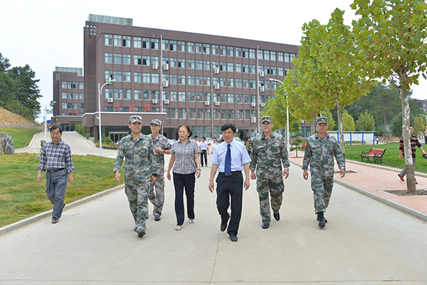 9月18日上午,2015级新生开学典礼暨军训动员大会结束后,院长施昌海,党委书记张莉,副院长傅洪涛、王志华、毛海涛和承训部队首长郭勐、官军、郑重,以及校官赵益龙、孙建利,在有关部门负责同志陪同下,深入学生军训一线检查指导工作,并亲切看望了正在军训的教官及师生。