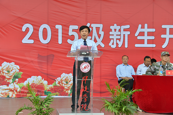 9月18日上午,学院2015级新生开学典礼暨军训动员大会在田径场举行。院长施昌海,党委书记张莉,副院长傅洪涛、王志华、毛海涛,承训部队首长郭勐、郑重,以及校官赵益龙、孙建利,学院各单位负责人和特聘教授等出席大会。承训部队教官、各系行政秘书、学工秘书、新生辅导员和2015级新生参加了会议。大会由张莉主持。