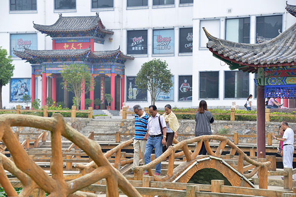在金牛山文化公园的信阳大别山民俗文化村里,以大别山画派为主的字画艺术、制茶工艺和茶具、特色产品及古玩字画吸引了专家、教授们的流连驻足。大家边走边看,兴趣盎然地交流着对信阳大别山民俗文化的认识。