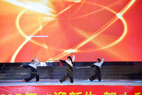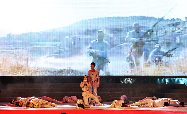 和平时期不忘战争年代的艰苦,当代青年牢记革命先烈的英勇,一系列弘扬爱国主义精神的红色节目,将整台晚会推向高潮。歌伴舞《踏着先辈的足迹》和由艺术系副主任潘传柏指挥的大合唱《松花江上》重现了中华儿女浴血抗战的英勇历史,有力激发了师生们的爱国报国热情。《中国,我为你歌唱》、《中华好儿孙》等歌曲,焕发了学子们昂扬的斗志和锤炼钢铁意志的决心。武术《中华魂》、中文系韩春子老师的《川剧变脸》展示了中华文明的博大精深。《共圆中国梦》唱出了华锐学子与中国梦、华锐梦携手同行,脚踏实地实践青春梦想的信念与心声。