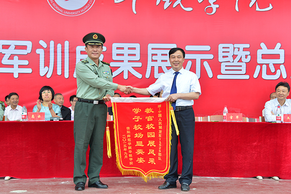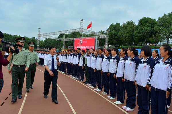 9月29日上午,秋风送爽,天高云淡,学院2015级新生军训成果展示暨总结表彰大会在体育场隆重举行。院长施昌海,党委书记张莉,常务副院长高云,副院长王志华、毛海涛,院长助理杨高伟,承训部队首长官军、赵益龙和全体教官出席大会。特聘教授代表,各系、各部门负责同志,新生辅导员和2015级全体新生参加了会议。大会由王志华主持。